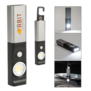 Featuring an extra-bright white COB light, it provides ample illumination in any environment. The push-button control allows for easy on/off operation, while the multiple light settings offer flexibility to suit different lighting needs. The front COB light offers three settings - high, low, and flashing, while the side COB light provides two settings - high and low. The convenient hook with a built-in magnet allows for easy hanging and attachment to metal surfaces, providing hands-free use. Included replaceable 18650 battery ensures long-lasting performance.